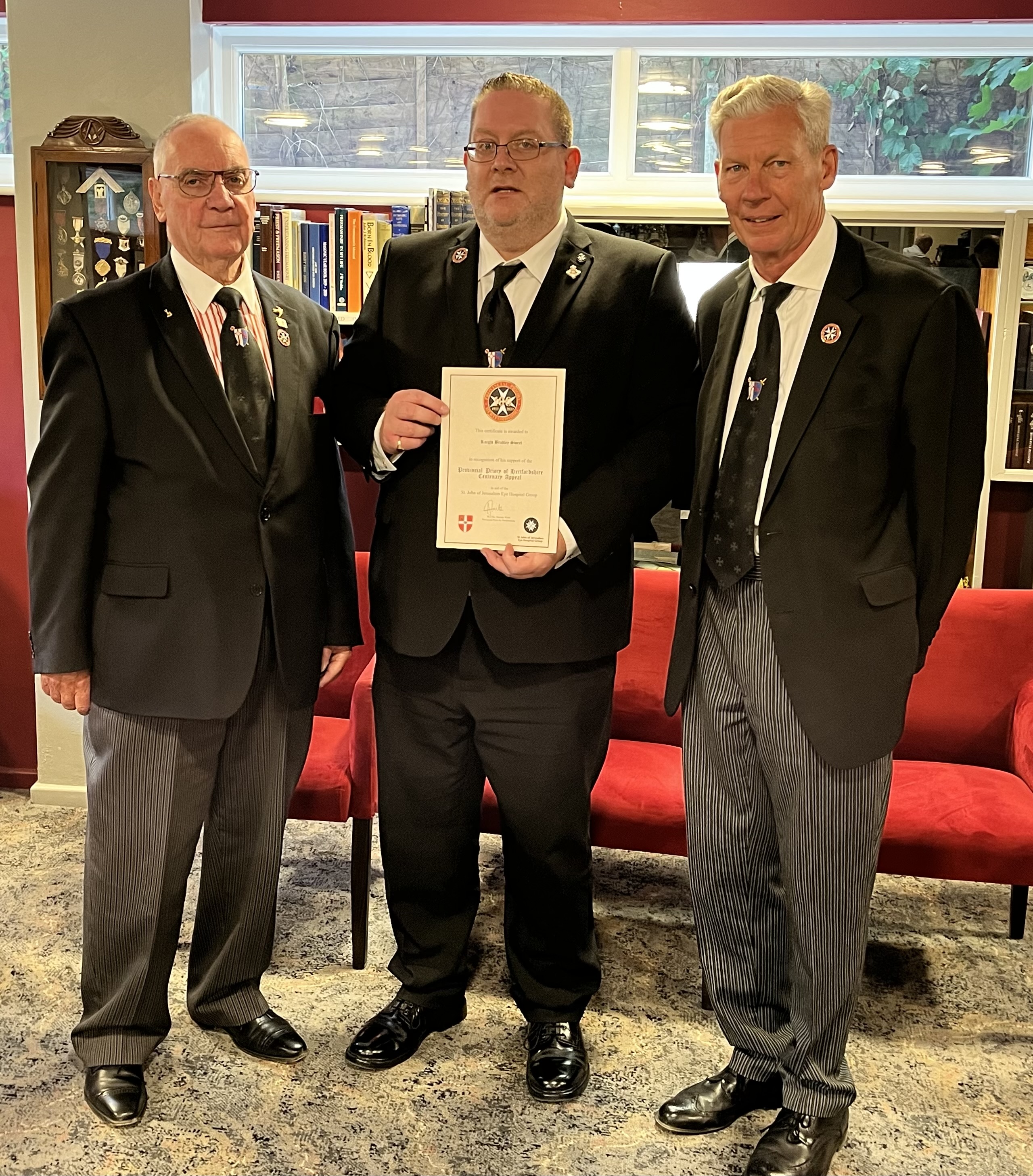 The appeal has been kick-started with a hefty donation of £2000 from the Province followed by a further donation of £1000 from the Preceptory of Jacques de Molay, No.670. The Provincial Prior was also delighted to be able to present the very first lapel badge and certificate to the Provincial Sub-Prior, V.E. Kt. Mike Beaty.