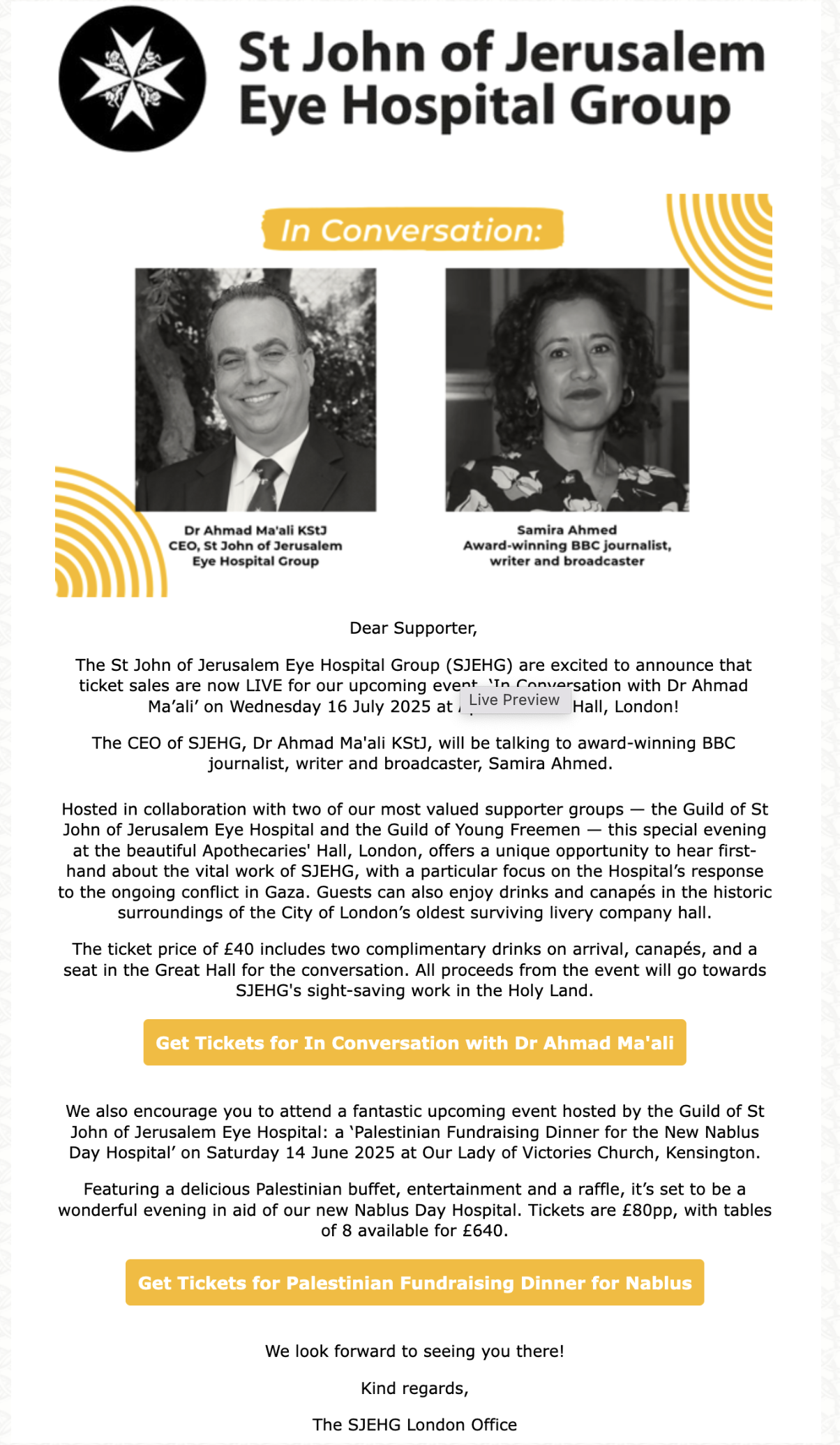 Each year, the funds raised will be used to sponsor a Theatre Nurse at the St John Gaza Hospital.