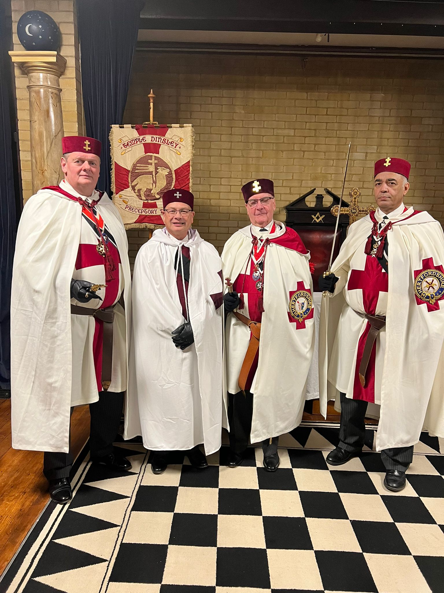 It has been formed for the purpose of helping the Knights of the Province to learn and practise the drill and ritual, and so improve the standards throughout the Preceptories in the Province of Hertfordshire.